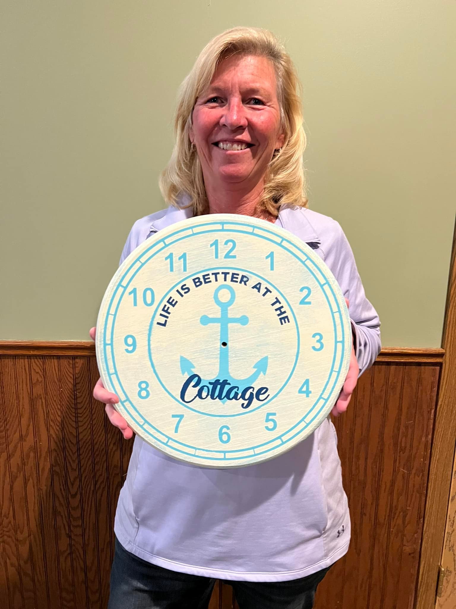 • Clock Style – Do you want a painted background with painted numbers, letters, or design or a Whitewashed look with your choice of stained background (multiple stain options available). If you want a whitewashed look, you’ll be required to select a stain color so that your wood can be pre-stained prior to the workshop.